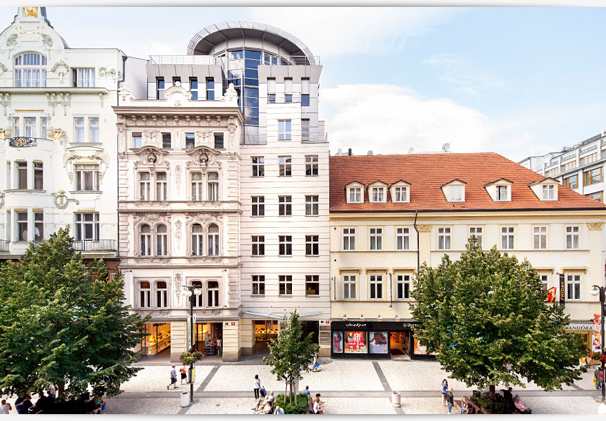 Administrativní budova Na Příkopě 9 a 11 se nachází na Starém městě v ulici na příkopě, která je označovaná společně s Václavským náměstím jako „Zlatý kříž“. Architektura budovy spojuje klasicistní prvky s moderním vzhledem, díky kulaté ocelové nástavbě s hliníkovým obložením. Budova je velkoplošně prosklena a nabízí tak nepřekonatelné výhledy na historické centrum Prahy. Toto místo je skvěle dostupné veřejnou dopravou a v okolí se nachází luxusní restaurace, kavárny a obchody.